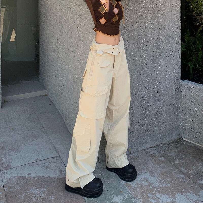 【韓国通販 dgo】【Mサイズ/カーキ色は即納!】2colors マルチポケット ストリート カーゴパンツ カーキ/クリーミーホワイト(W3132)トレンドアイテム | dgo-for overseas